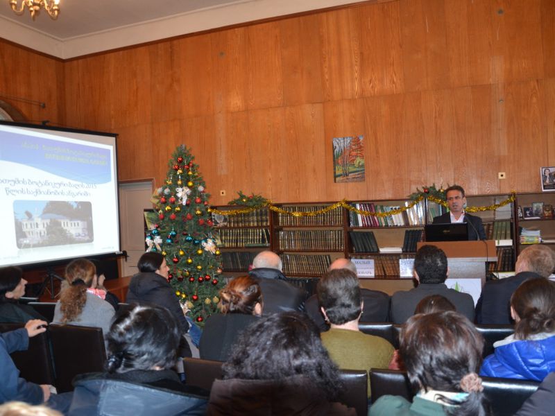 28 დეკემბერს, წინასაახალწლო განწყობა სუფევდა ბათუმის ბოტანიკური ბაღის სამეცნიერო ბიბლიოთეკაში, სადაც, თანამშრომლების წინაშე ბაღის მიერ 2015 წელს გაწეული მუშაობის შესახებ ანგარიშით წარსდგა ბათუმის ბოტანიკური ბაღის დირექტორის მოვალეობის შემსრულებელი ლევან დავითაძე.